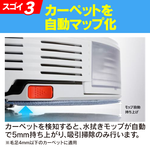 ・カーペットで水拭きモップが自動リフト/回避