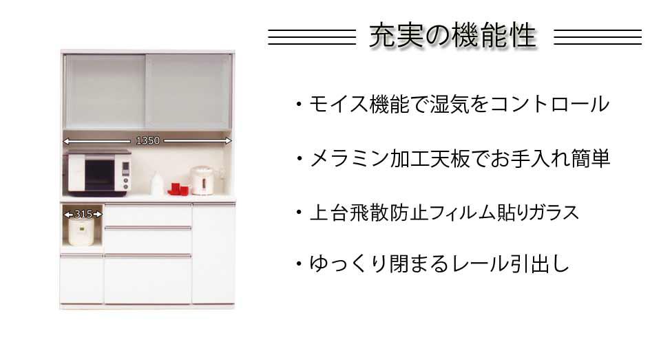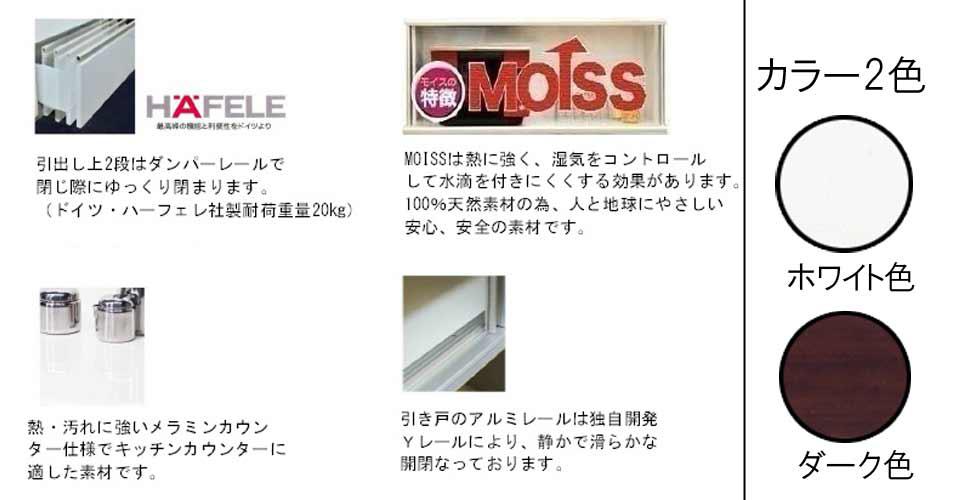 ゆっくり閉まるドイツ製ダンパーレールを使用した引出し、湿気をコントロールするモイス、汚れに強くお手入れが簡単なメラミン加工天板、メーカー独自開発のなめらかな引き戸レールなど、細かなところまでうれしい機能が魅力的なオープンボードです。