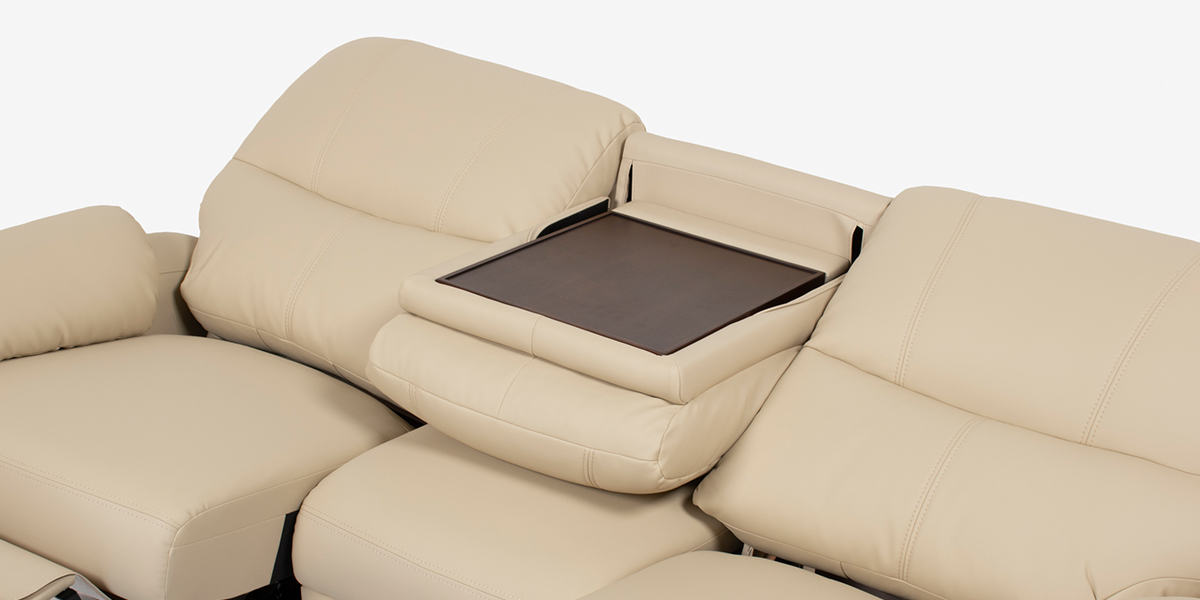 ソファ中央の背もたれを倒すとサイドテーブルとしてお使いいただけます。