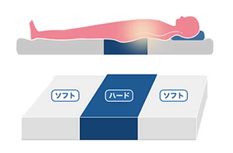 マットレス中材はセンターハード仕様で腰部をしっかりとサポートします。