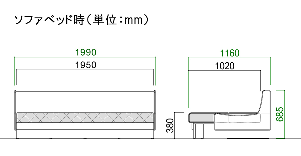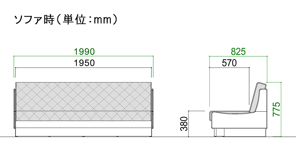 サイズ:幅1990X奥行825~1160X高さ685~775