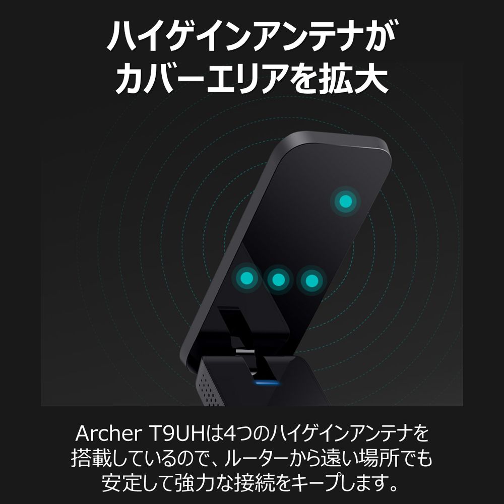 ・Archer T9UHは4つのハイゲインアンテナを搭載しているので、ルーターから遠い場所でも安定して強力な接続をキープします。