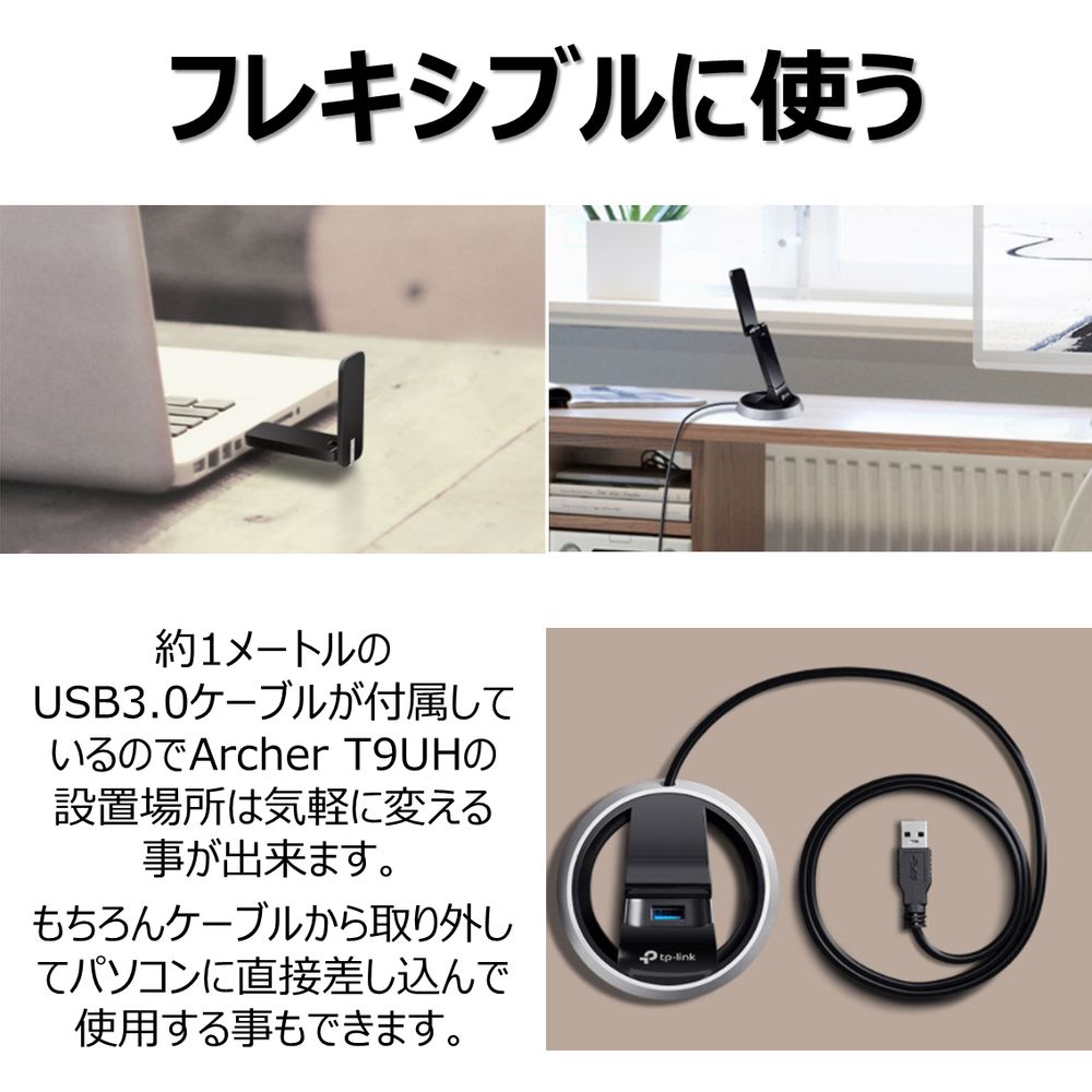 ・約120cmのUSB3.0ケーブルとクレードルが付属しているので、Archer T9UHの設置場所は気軽に変える事が出来ます。