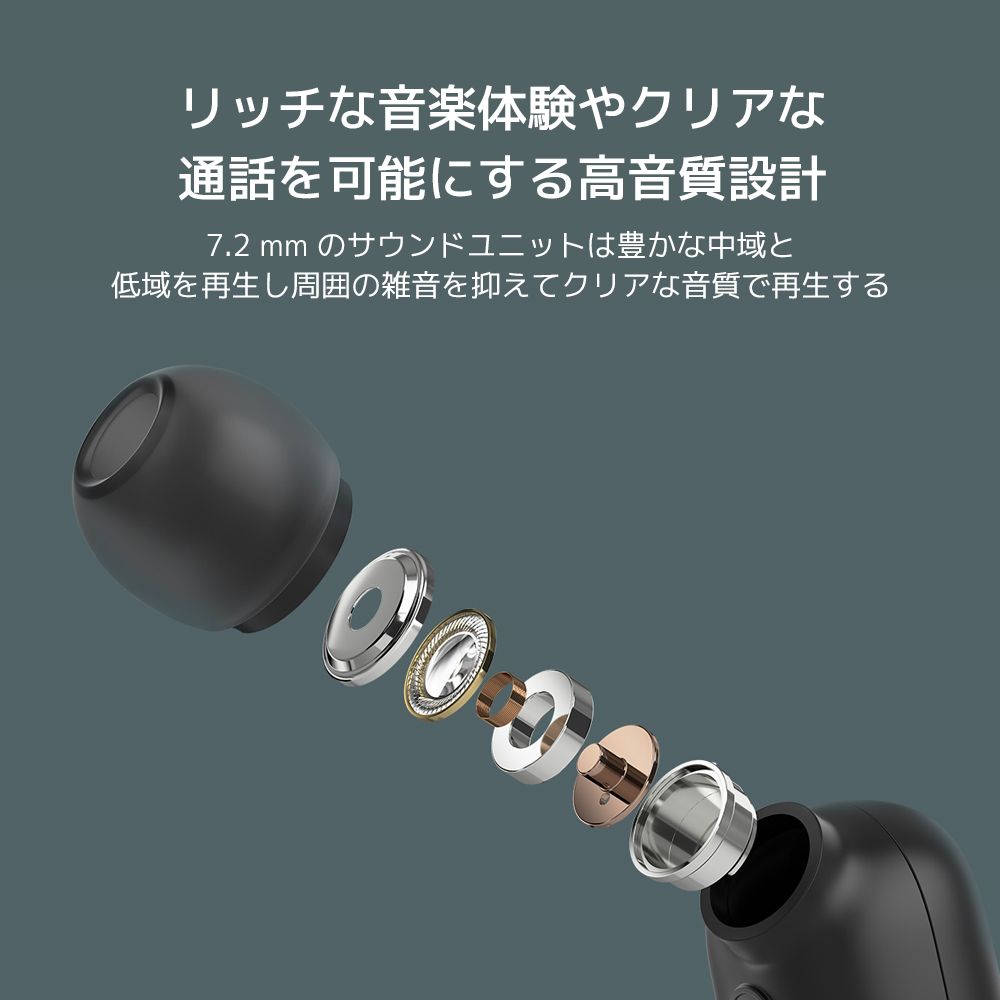 7.2 mm のサウンドユニットは音響の専門家により徹底的にチューニングされ、豊かな中域と低域を再生します。