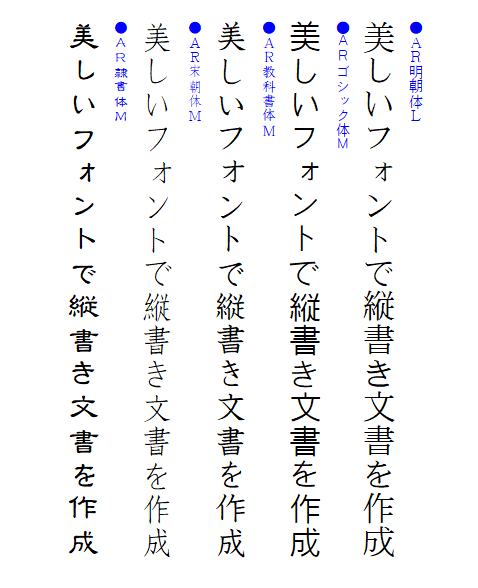 ●縦書きが映えるフォント5書体縦書き文書を作成する際に利用できる、見栄えが整う5書体が追加されました。用途に応じて、ニュアンスの異なる書体を利用できます。