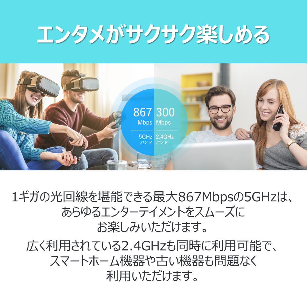 ●エンタメがサクサク楽しめるAC1200デュアルバンドWi-Fi